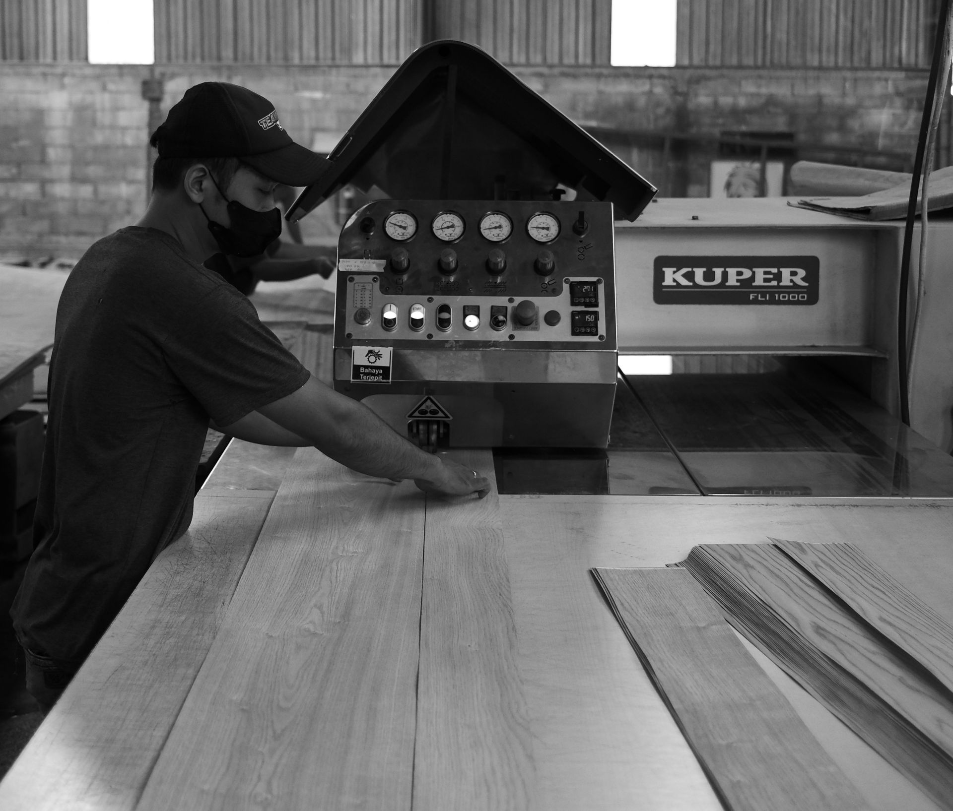 Our VENEER selection is carefully curated for quality and includes primarily Oak, Walnut, and Teak. Our Teak originates from Javanese government-managed plantations and is SVLK certified, while our Oak is imported from Europe and sourced from PEFC-certified forests and suppliers.